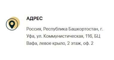 Россия, Республика Башкортостан, г. Уфа, ул. Коммунистическая, 116, БЦ Вафа, левое крыло, 2 этаж, оф. 2