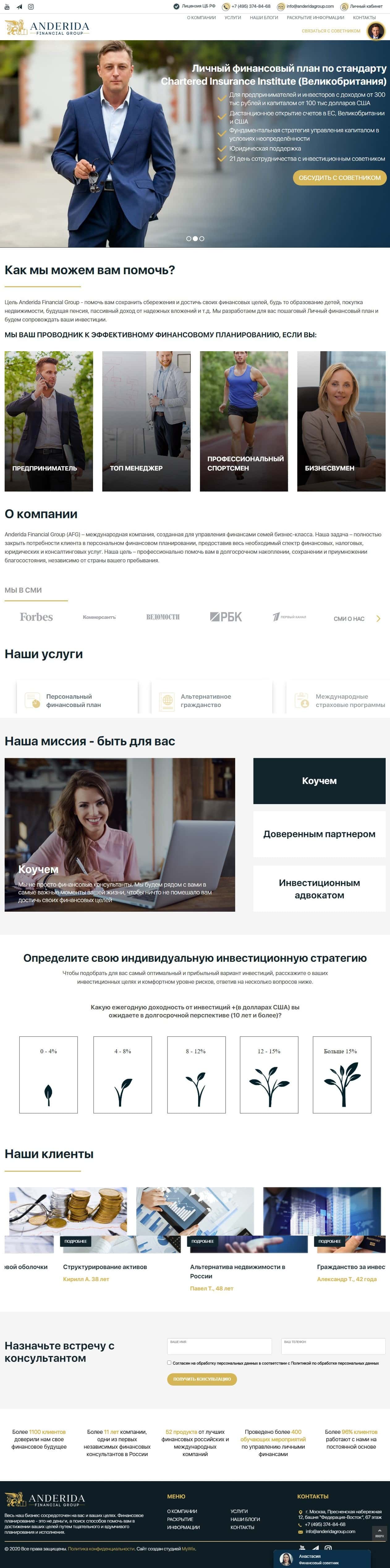 Главная страница сайта жуликов anderidagroup com мало чем отличается от других таких лохотронов: минимум полезной информации для клиента и посредственный дизайн.