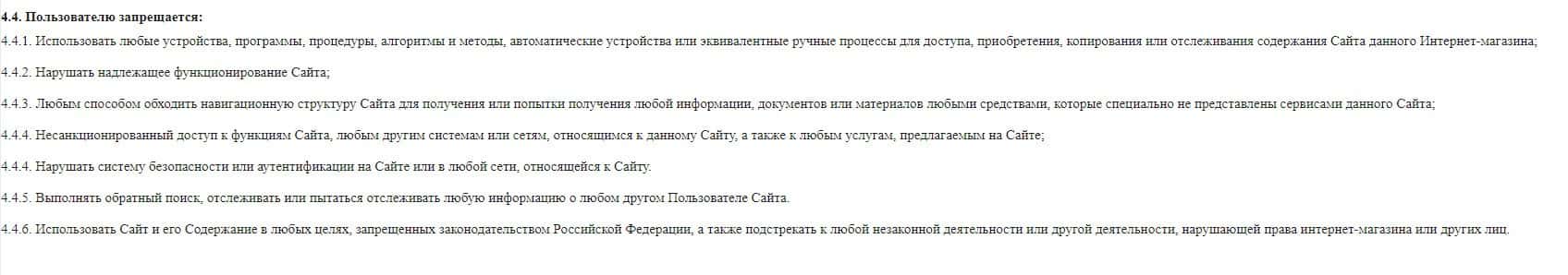 Пункт 4.4 уведомляет пользователя о том, что запрещено делать на сайте компании Аnkyr. За все эти нарушения клиента могут забанить или удалить с сайта.