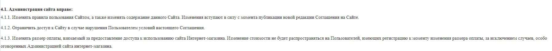 В пункте 4.1 говорится о том, что компания Аnkyr может изменять условия настоящего договора, а также ограничить пользователю доступ к сайту в случае нарушения правил.