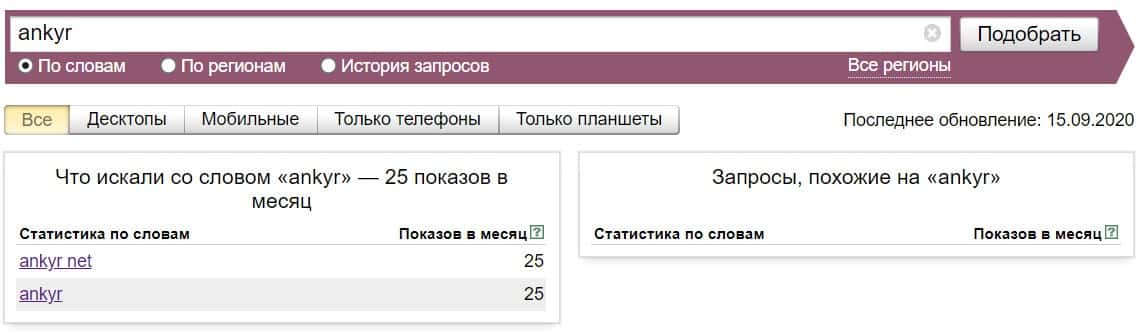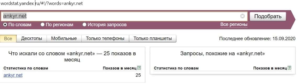 В поисковой системе Яндекс сайт брокерской конторы "ankyr.net", вбитый в строку с точкой, пользователи искали всего лишь 25 раза за месяц.
