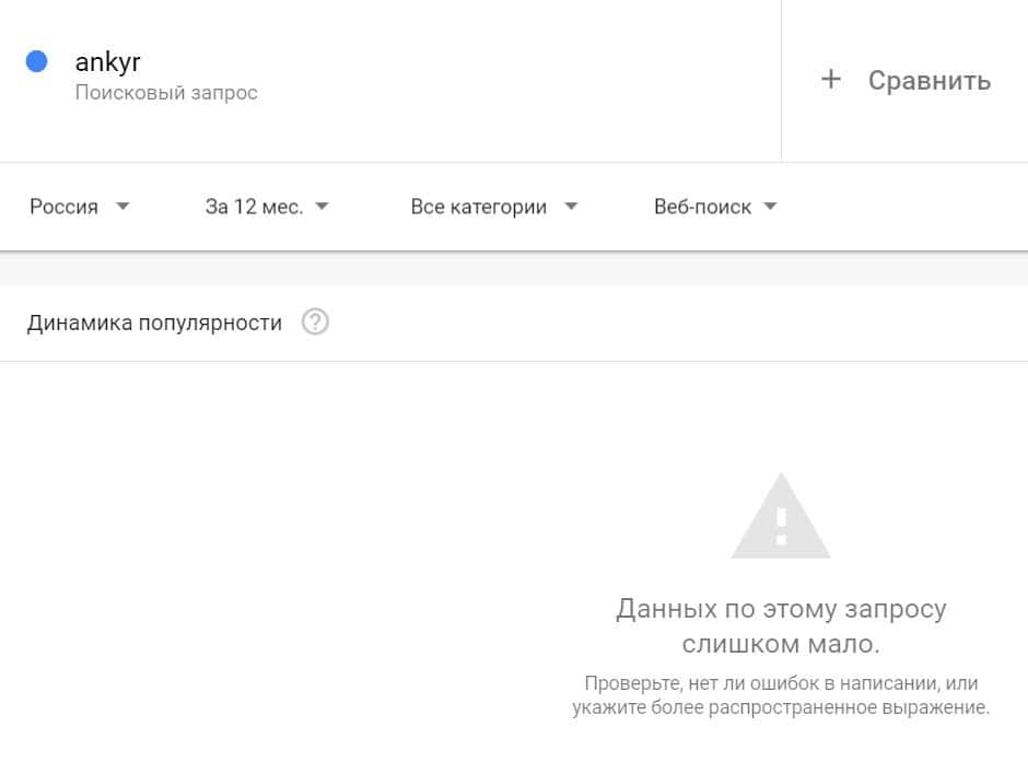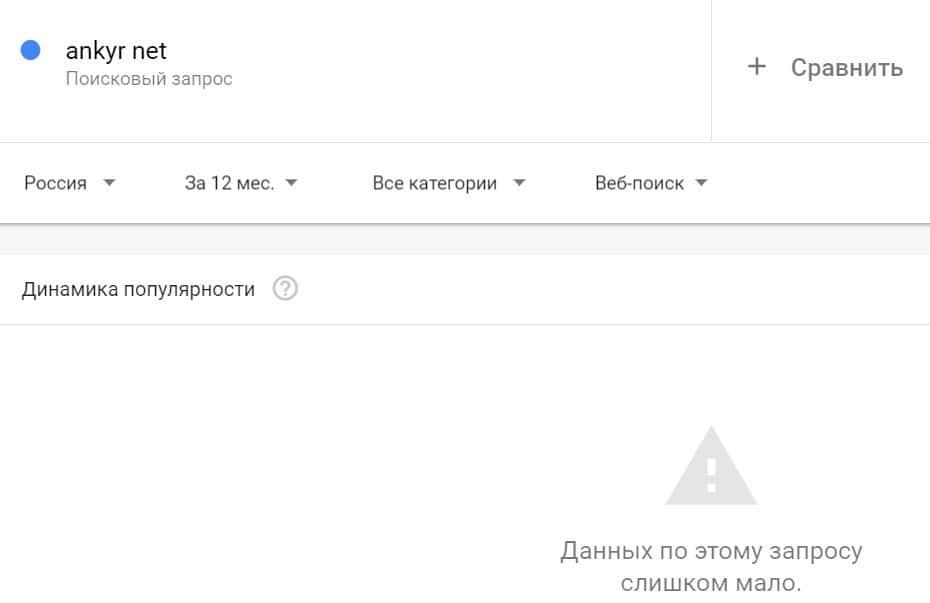 Посмотрим, насколько популярно название бренда "Аnkyr", написанное на английском языке. Данных по этому запросу нет, так как в Гугл не было большого количества запросов.