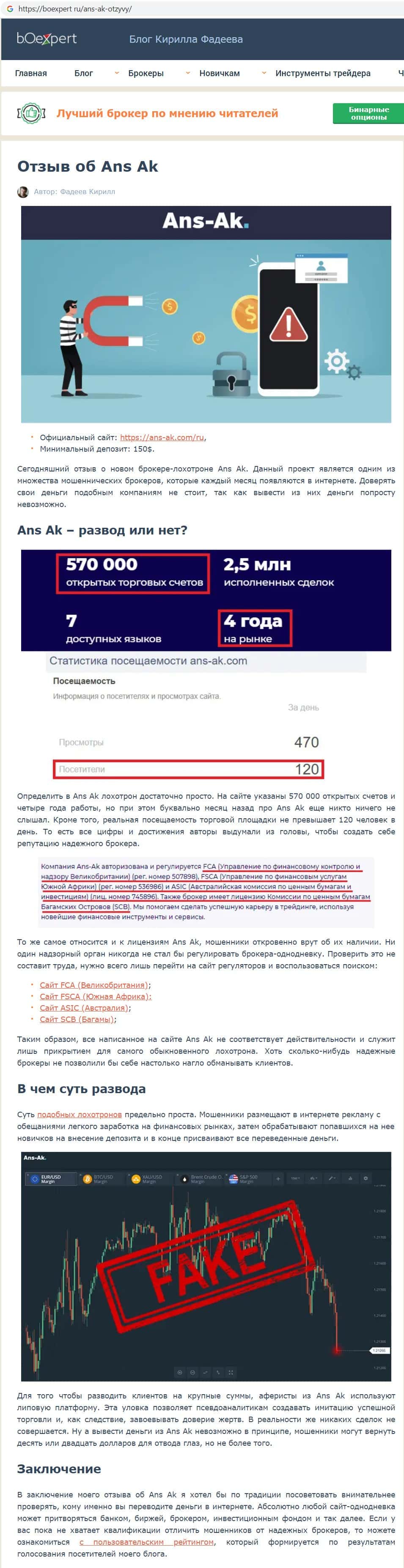 Так же разоблачительную статью о конторе аферистов Анс Ак опубликовал сайт forex-scam org, который рассказал, что данная контора является всего лишь липовым брокером.