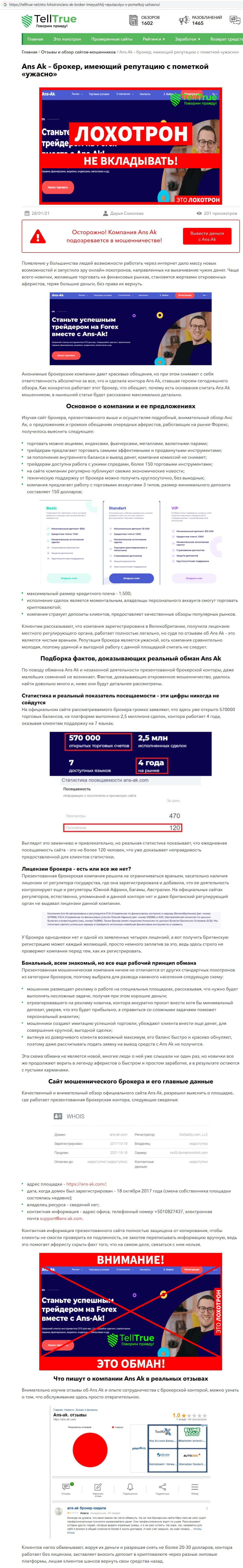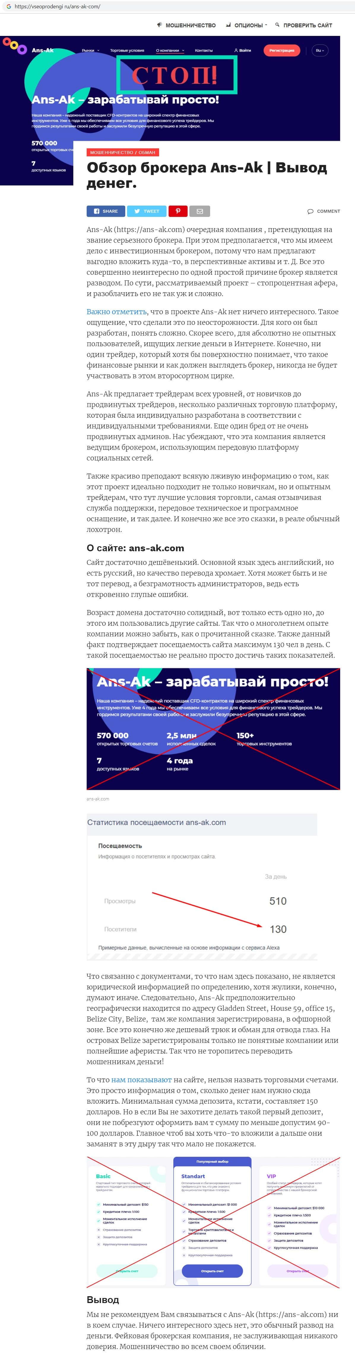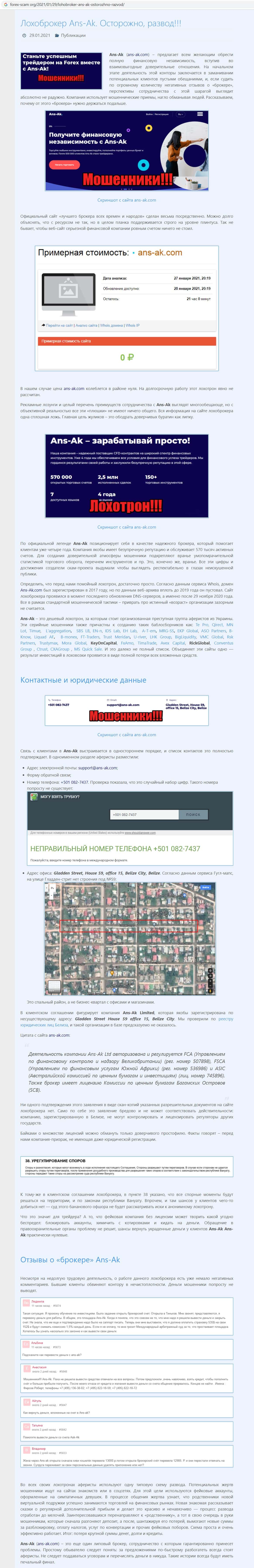 НЕ СТОИТ молчать о ворах из Анс Ак, они же разводят всех без исключения кого в состоянии ограбить !!!Мнение интернет ресурсов о компании финансовых кидал Ans Ak
