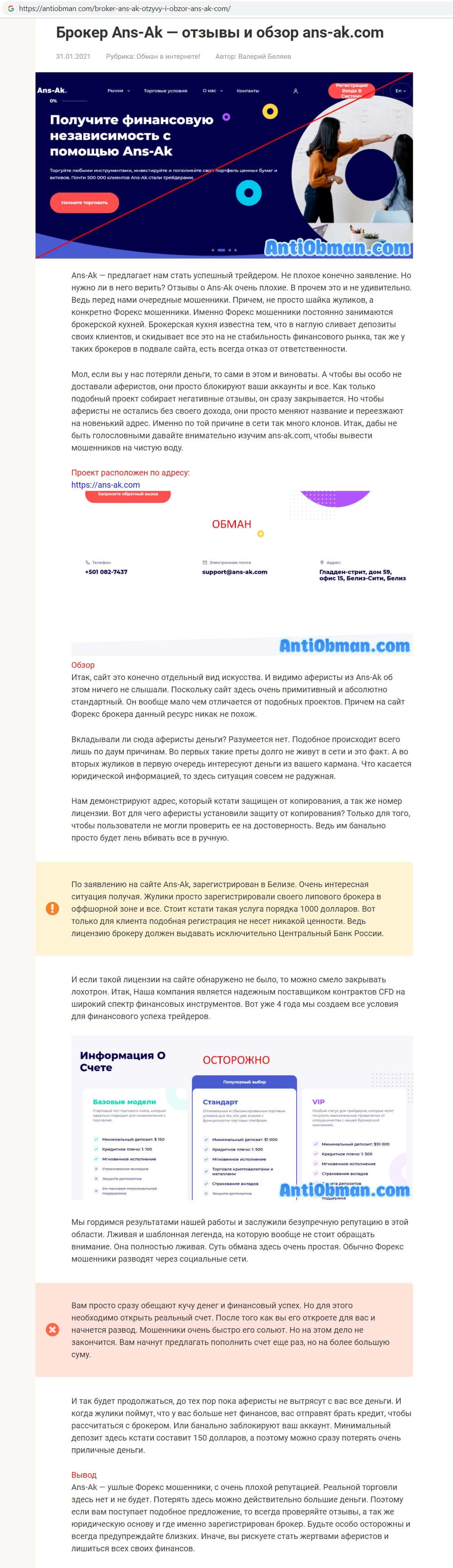 - Мнение интернет ресурсов о компании финансовых кидал Ans Ak