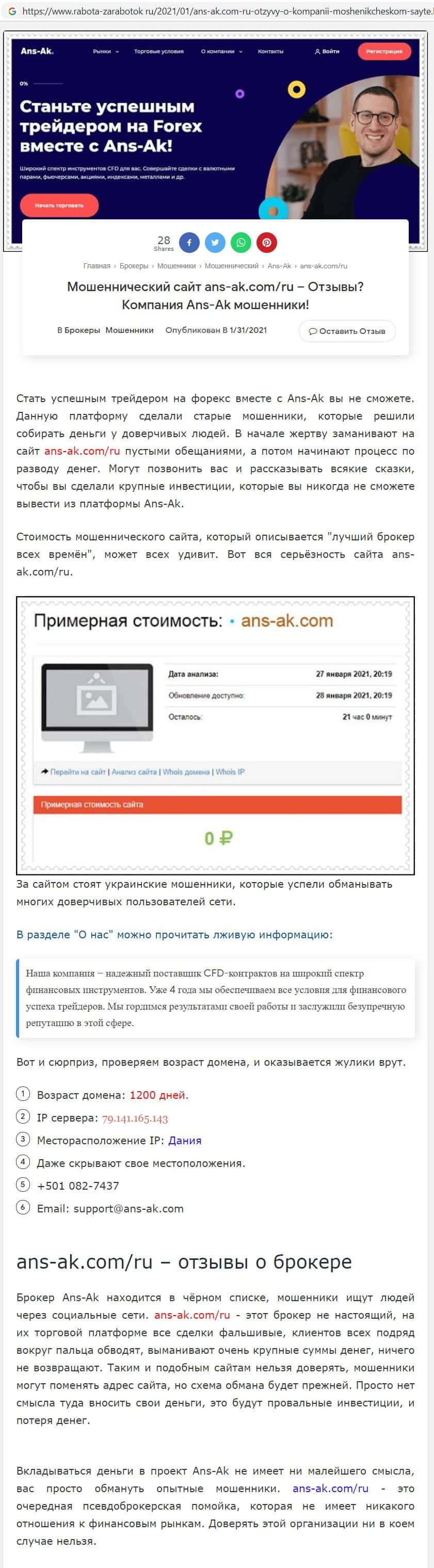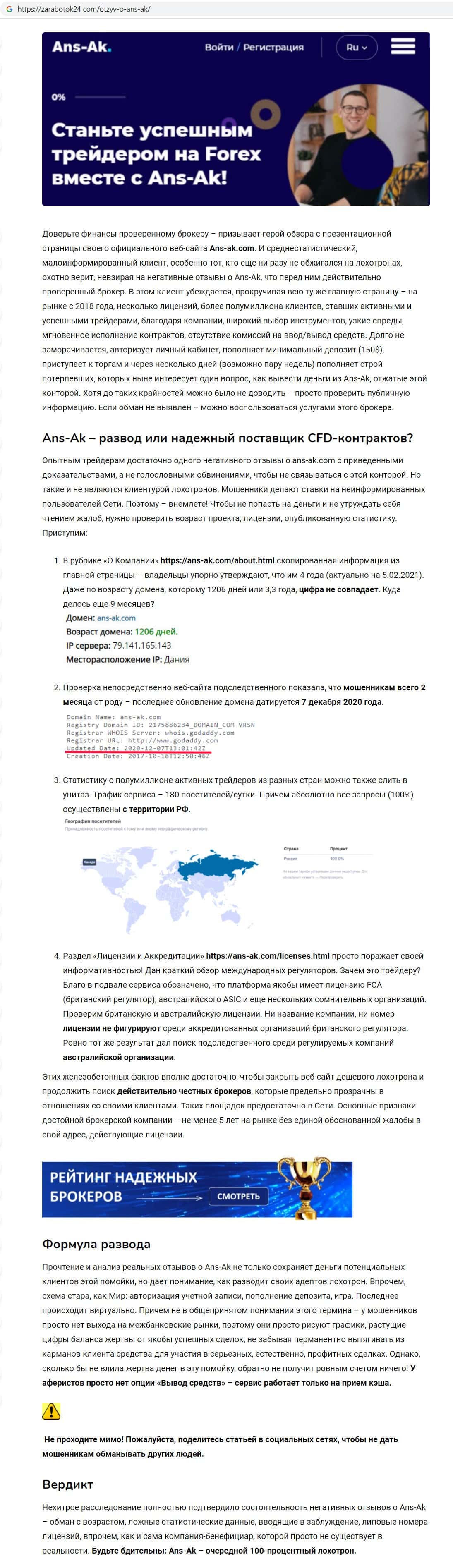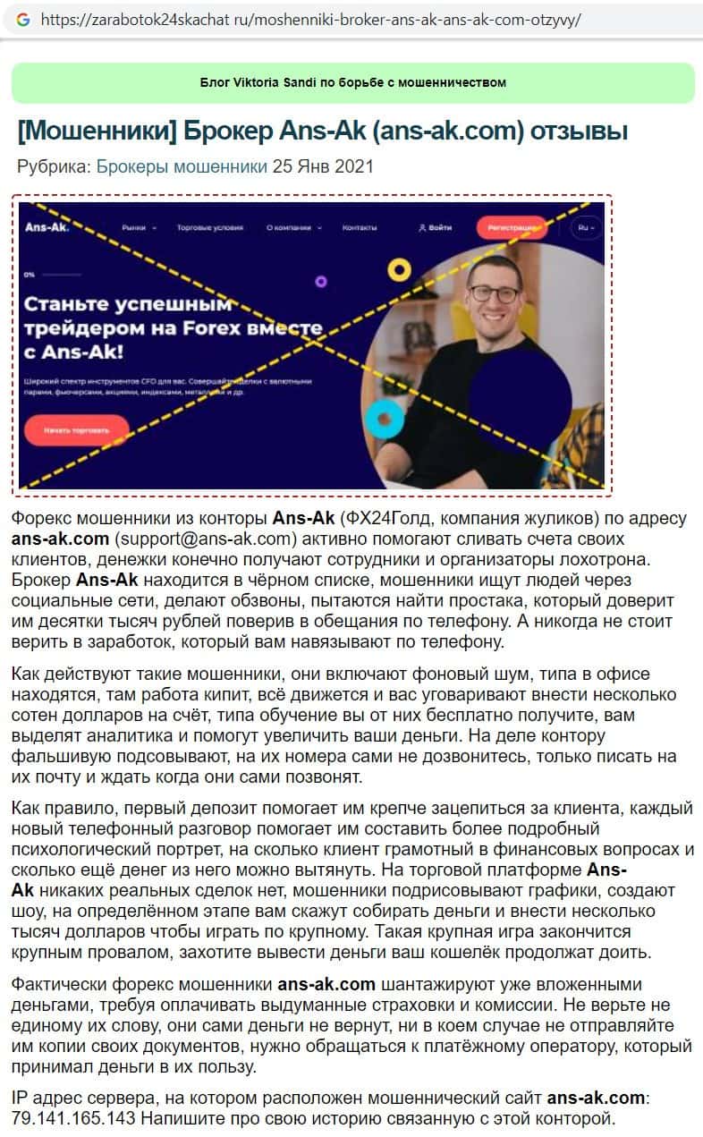 zarabotok24 com - сайт с информацией о лжеброкере Анс Ак