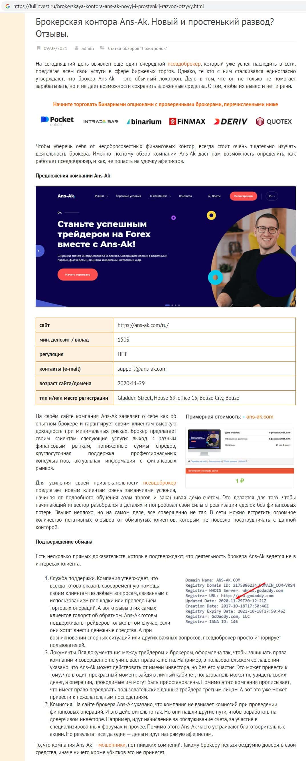 fullinvest ru - сайт с информацией о шарашкиной конторе Анс Ак