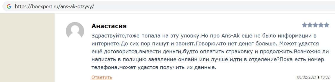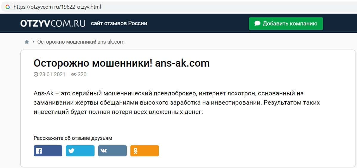otzyvcom ru - информация о конторе мошенников Ans Ak