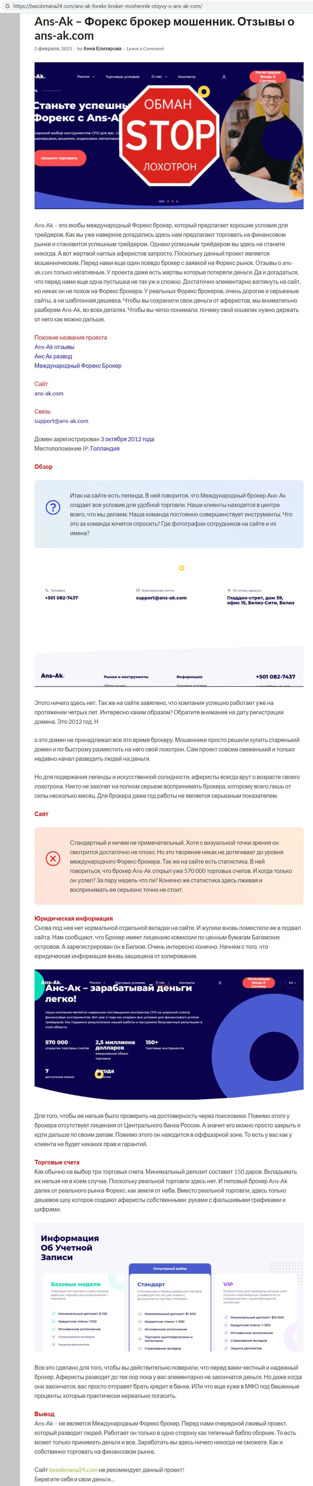 bezobmana24 com - сайт с информацией о аферистах Ans Ak