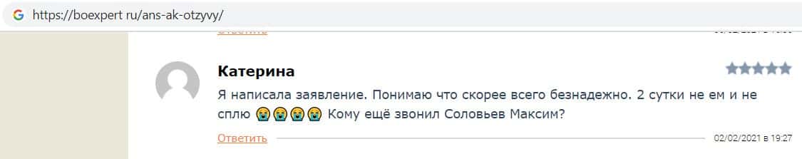 Отзывы интернет пользователей о шарашкиной конторе Ans Ak