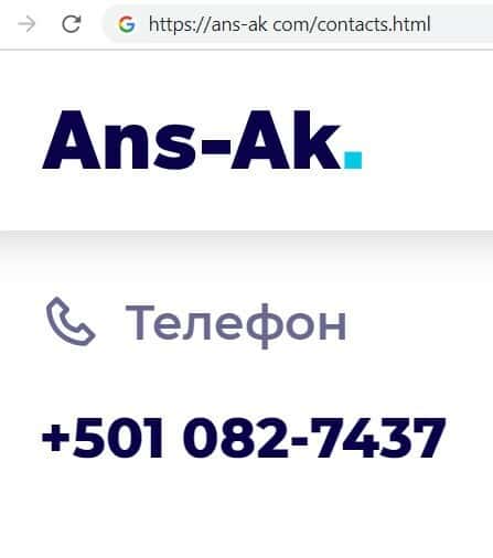 Аферисты Анс Ак на своём сайте указали телефонный номер, с которого они звонят наивным пользователям и стараются заманить с свой финансовый лохотрон. Номер кидал: