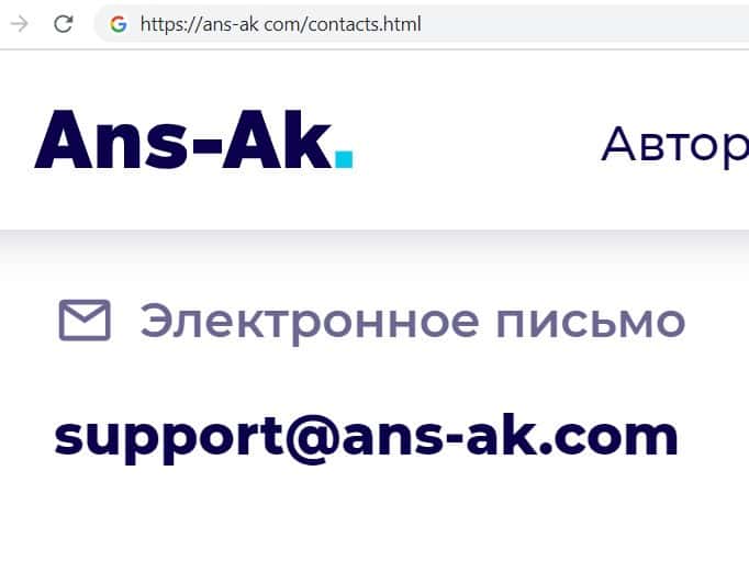 Так же компания махинаторов Анс Ак указала контактный адрес электронной почты. Поддержка фирмы будет общаться с клиентами пока они инвестируют. Почта махинаторов: