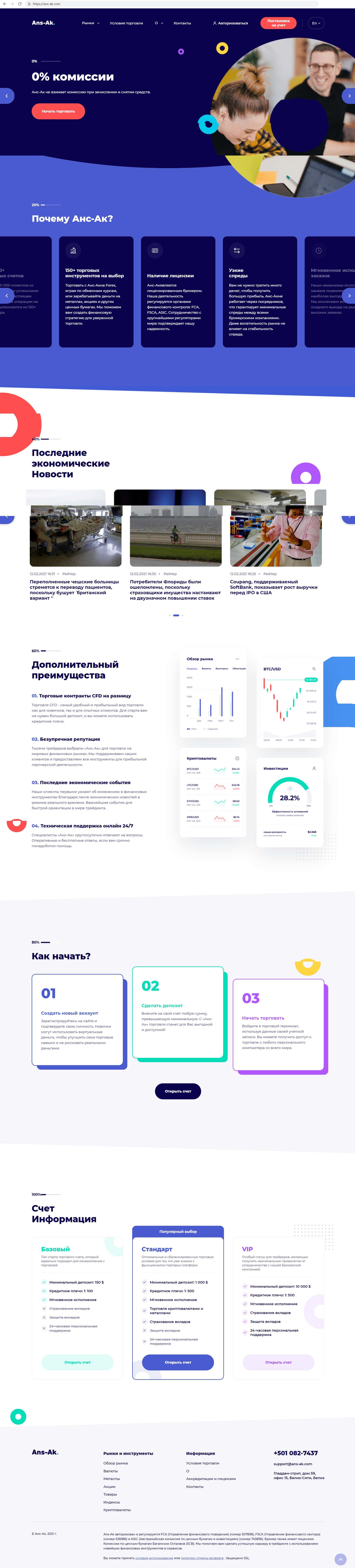 Главный сайт компании мошенников Анс Ак выглядит довольно посредственно, так как жулики не стали работать над ним, а создали по шаблону, и набили фальшивой информацией.