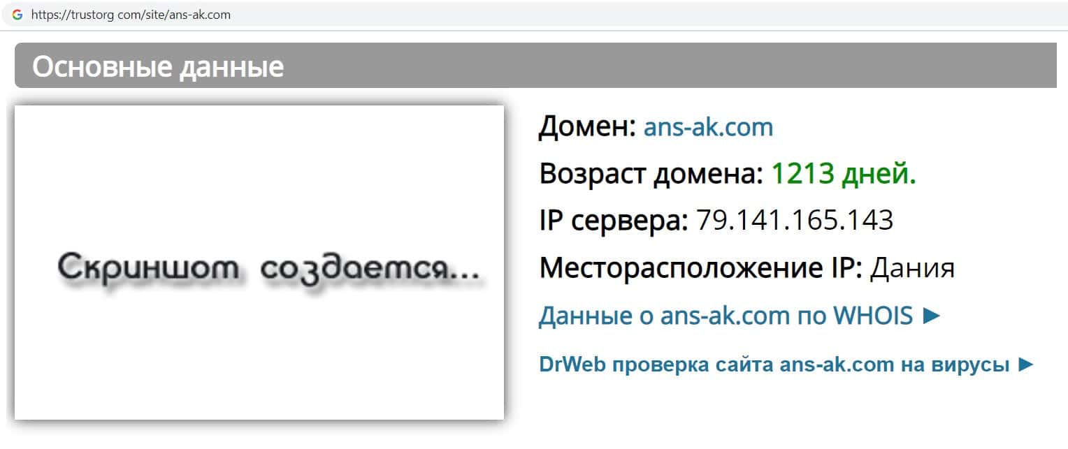 С помощью сайта "Доверие в Сети" мы решили узнать возраст интернет ресурса финансовых кидал Анс Ак. Оказалось, что фирма разводит пользователей уже более трёх лет.