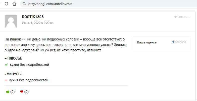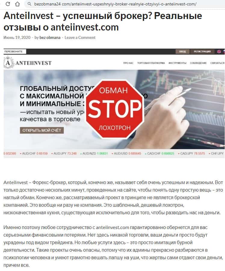 - Мнение автора написанной статьи о мошенниках AnteiInvest