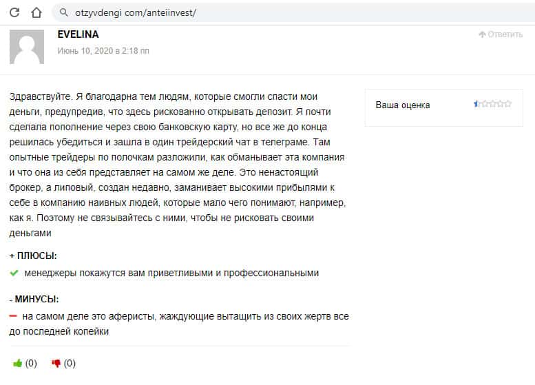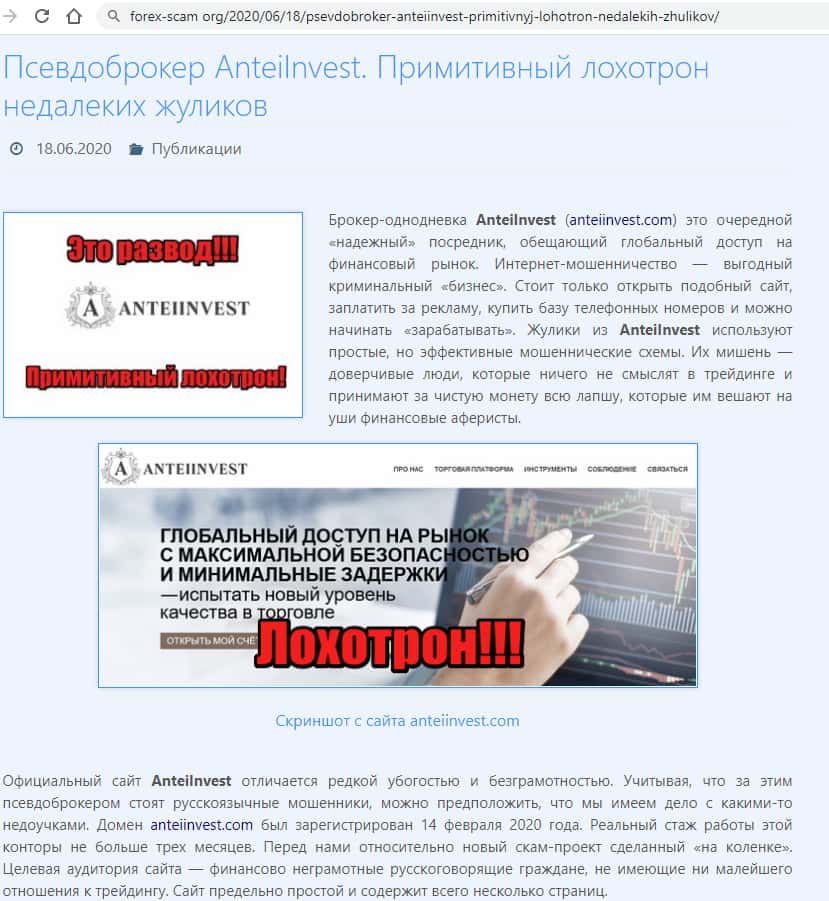 Мнение автора написанной статьи о мошенниках AnteiInvest