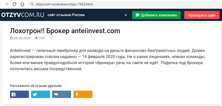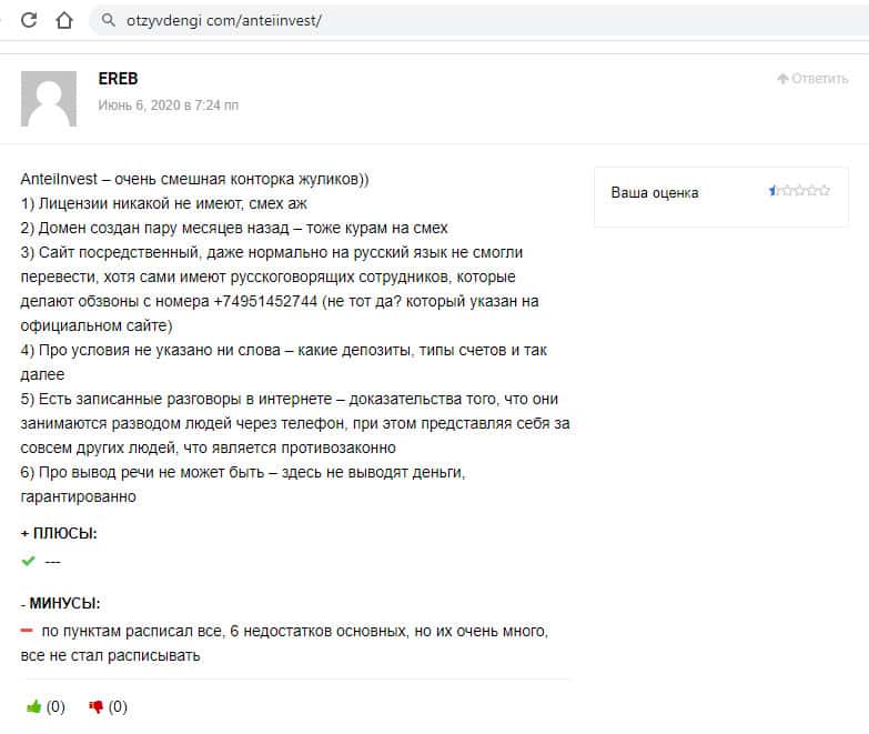 - Что можно сказать про сайт мошеннической конторки AnteiInvest?