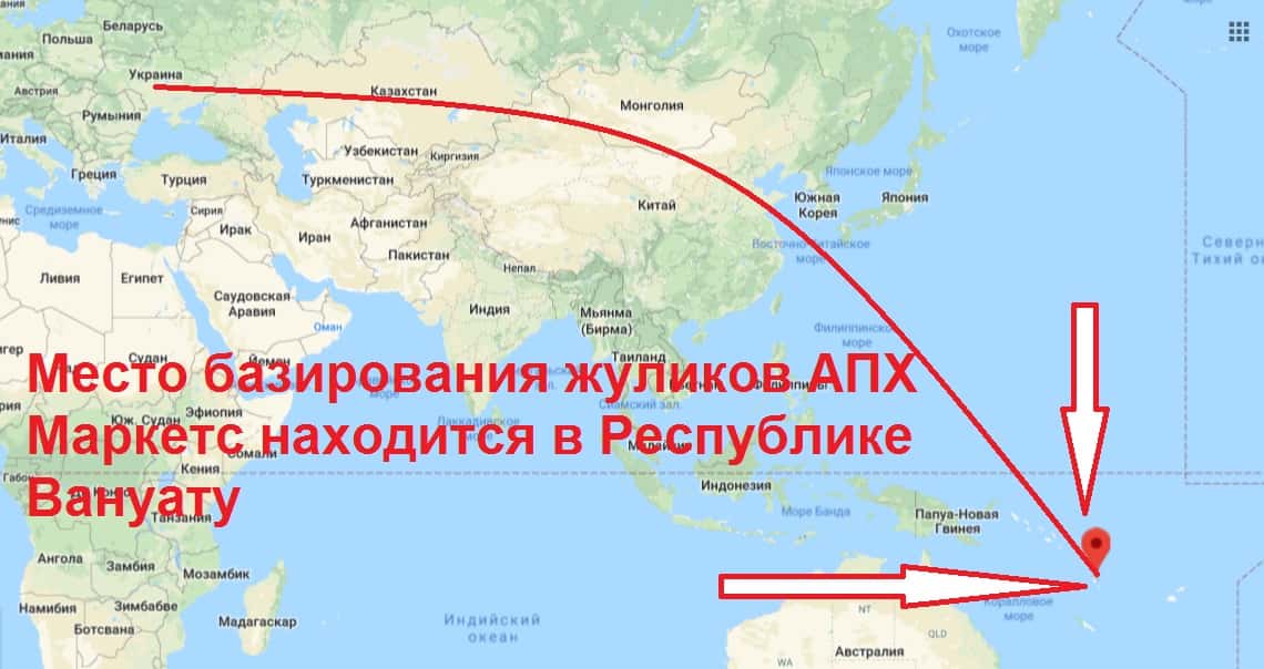 Контактной информации о себе мошенники АПХ Маркетс практически не оставили. Они указывают только лишь якобы адрес регистрации компании, не оставляя ни адреса электронной почты ни номера телефона. Контора АПХ Маркетс зарегистрирована в Республике Вануату.