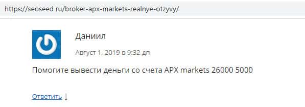 - Отзыв некого Даниила на сайте seoseed ru о мошенниках АПХ Маркетс