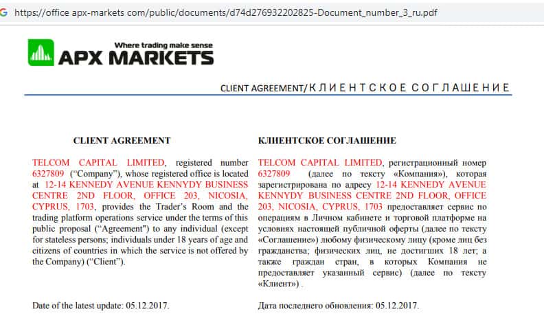 Клиентское соглашение скам-брокера АПХ Маркетс
