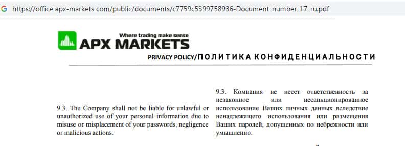 - Политика конфиденциальности мошенников APX Markets