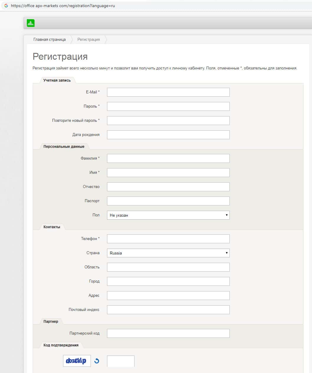Зарегистрировавшись на сайте компании АПХ Маркетс клиент должен выложить абсолютно всю информацию о себе начиная от даты рождения и паспортных данных, заканчивая местом проживания и даже почтовым индексом. Задумайтесь прежде чем давать свои данные шуллерам АПХ Маркетс.