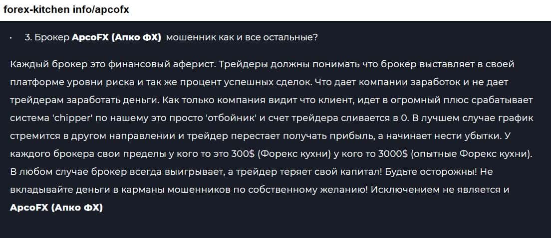 Единственный отзыв в сети о шараге ApcoFX