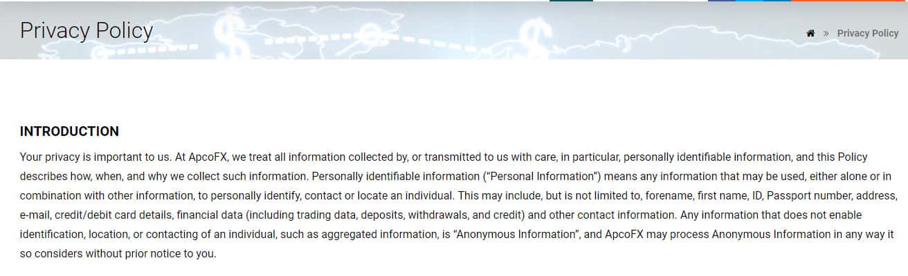 Политика конфендициальности жуликов ApcoFX