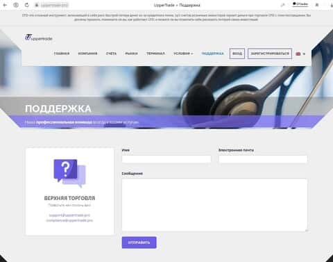 Мошенники Аппер Трейд совсем не стремятся к налаживанию диалога со своими клиентами, для них достаточно, чтобы клиент пополнял счет. А потому, для связи оставили только адрес своей почты: