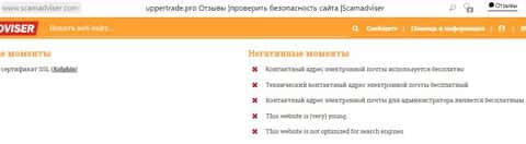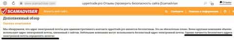 - Уровень доверия к шулерскому сайту uppertrade pro по оценке сайта Scamadviser