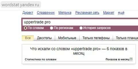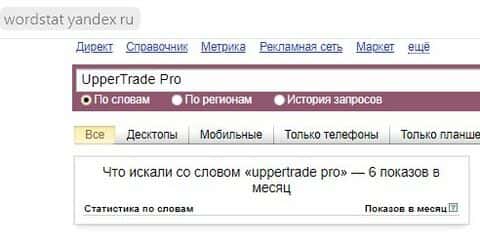 Как часто ищут шарашку Аппер Трейд в системе Яндекс?