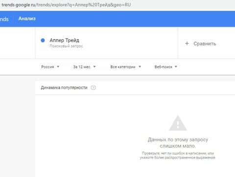- На сколько популярен бренд проходимцев UpperTrade Pro в системе Google