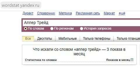 - Как часто ищут шарашку Аппер Трейд в системе Яндекс?