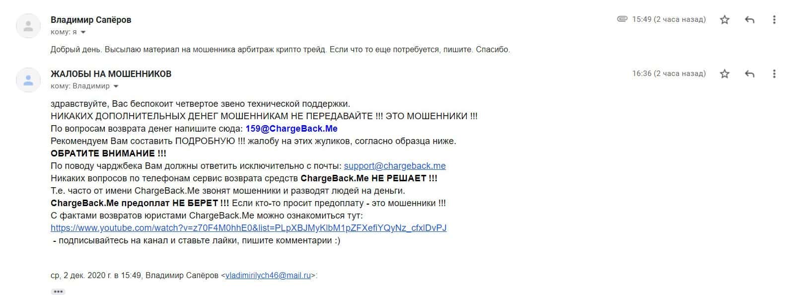 Далее представлена информация в виде жалобы на мошенническую интернет-организацию Арбитраж Крипто Трейдер, которая обманывает людей, решивших зарабатывать на криптовалюте.