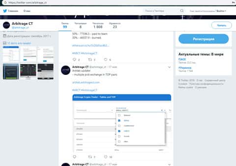Дабы соответствовать всем современным трендам мошенники Арбитраж Крипто Трейдер обзавелись страницами в социальных сетях, одной из которых стал Twitter, в котором лохотрон Arbitrage Crypto Trader имеет тысячу читателей, однако активности как самих жуликов Арбитраж Крипто Трейдер, так и читателей на странице нету.