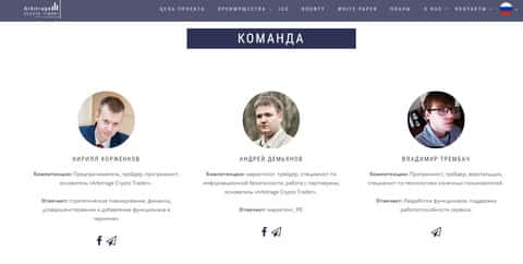 О руководителях лохотрона Arbitrage Crypto Trader можно узнать на главной странице сайта мошенников, а так же на страницах руководства шулеров Арбитраж Крипто Трейдер о том, как сливать им деньги или же описание их "чудо" платформы для заработков. Ниже перечислим информацию о руководителях с сайта жуликов Arbitrage Crypto Trader: