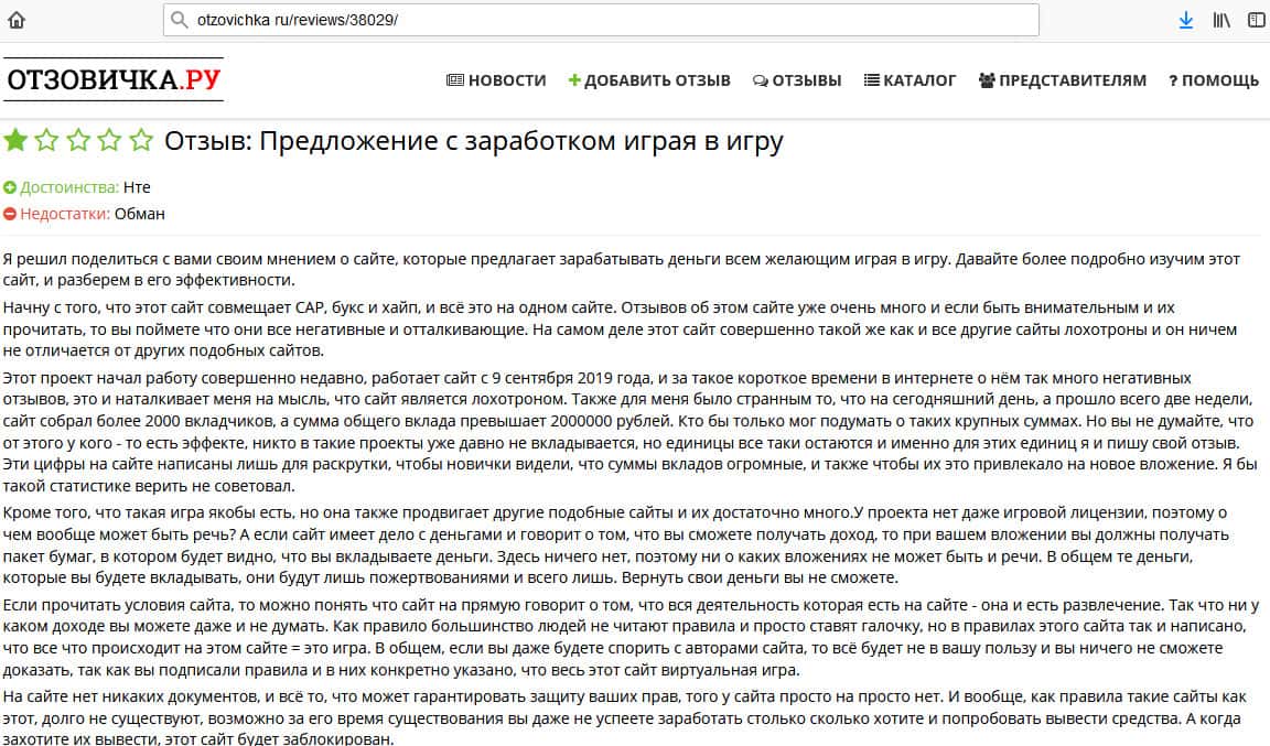 О том, что эта "инвестиционная" игра на самом деле банальный лохотрон уже говорят пользователи не в первый раз. Хоть мошенники по мере сил и стараются чистить о себе отзывы в интернете, но они все же всплывают и на страницах блогов известных людей. Обращайте внимание на такую агрументацию и не попадете в лапы мошенников.