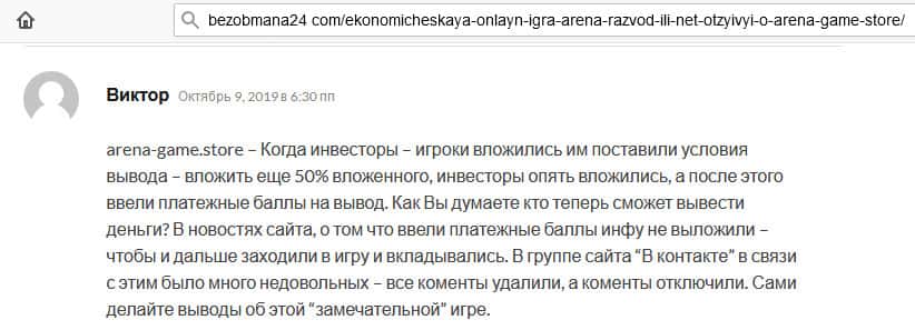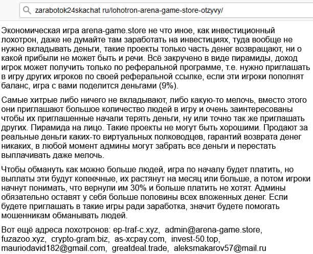- Отзыв о шаражке Arena-Game на известном форуме обзора хайпов