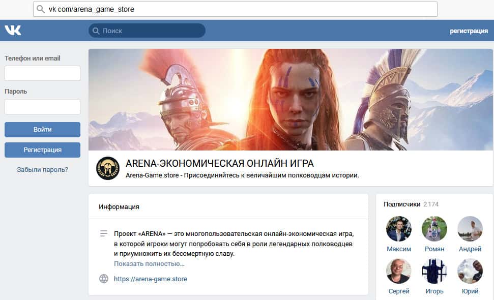 - Арена Гейм ведут деятельность в социальных сетях