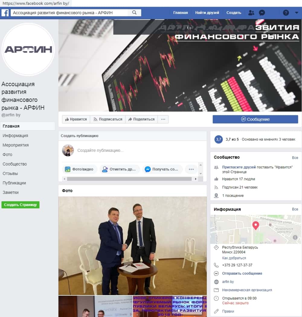 Для пущей убедительности и показушной серьезности, аферюги ARFIN By имеют аккаунты и группы в соцсетях. Зарубежный сервис facebook com мошенники ARFIN By сочли для своих темных целей подходящей площадкой. Но вот как-то странно выглядит количество подписчиков этой недогруппы. Видимо не внушает доверия конторка.