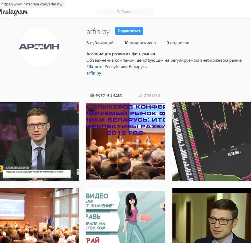 Еще одной соцсетью на просторах интернет представлен сомнительный регулятор ARFIN By. Это популярный сервис фотопостинга instagram com. Здесь мошенники ARFIN By собрали прямо-таки аншлаг по сравнению с остальными случаями. Целых десять почитателей. Да и то вероятно либо это сами шарашники, либо другого не дано.