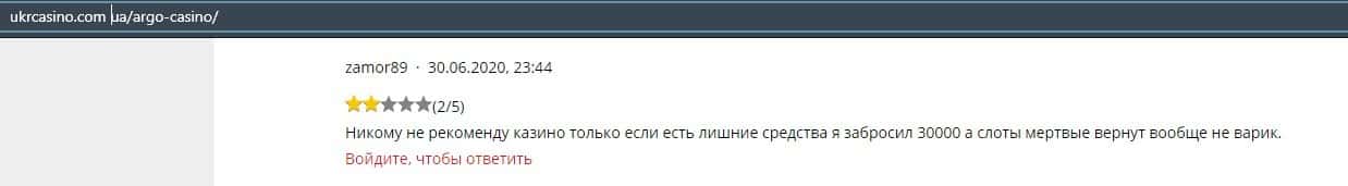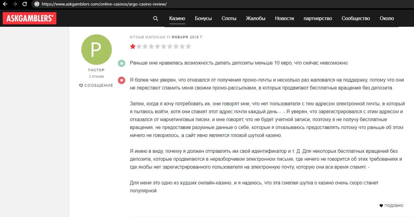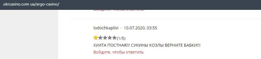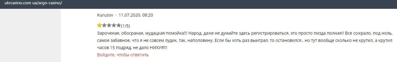 Игроки не рекомендуют мошенническое казино ArgoCasino