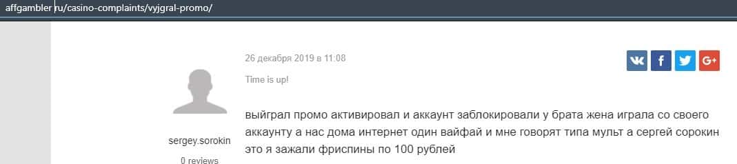 Игрок рассказал, как он выиграл промокод в конторе ArgoCasino и после регистрации заблокировали его счет. При чем такая же ситуация была как у брата, так и у жены.