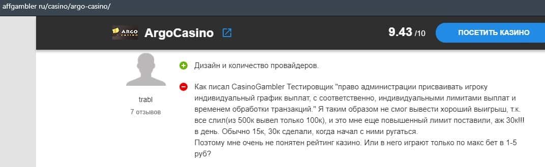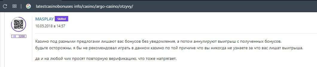 - Игроки не рекомендуют мошенническое казино ArgoCasino
