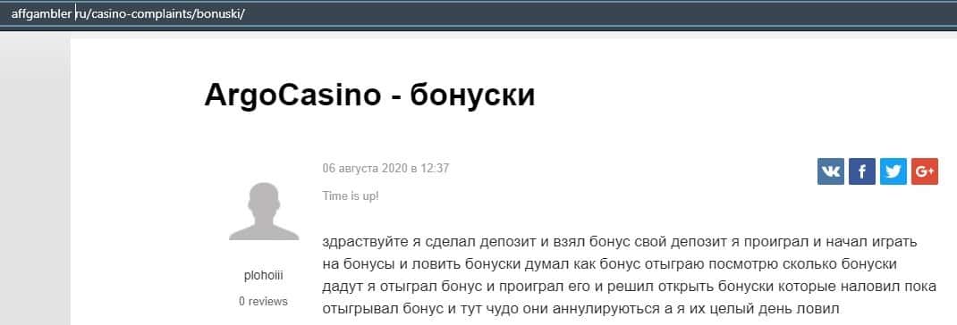 - Проблема с бонусами в шулерском казино ArgoCasino