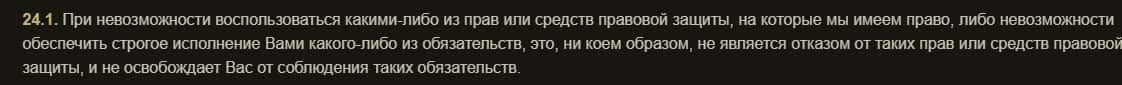 Шулера ArgoCasino также не исключают вариант, когда они не смогут выполнять предписанное данным соглашением. При этом ответственности за это они нести не будут.