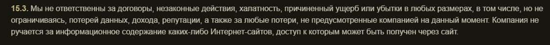 Мошенники Арго Казино пишут в соглашении, что они не ответственны за договоры, незаконные действия, халатность, ущерб и прочее со стороны своих сотрудников.