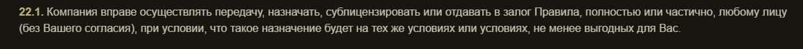 В соглашении сказано, что псевдо-казино ArgoCasino вправе осуществлять передачу прав по поводу клиента третьим лицам, при чем за их действия они нести ответственность не будут.