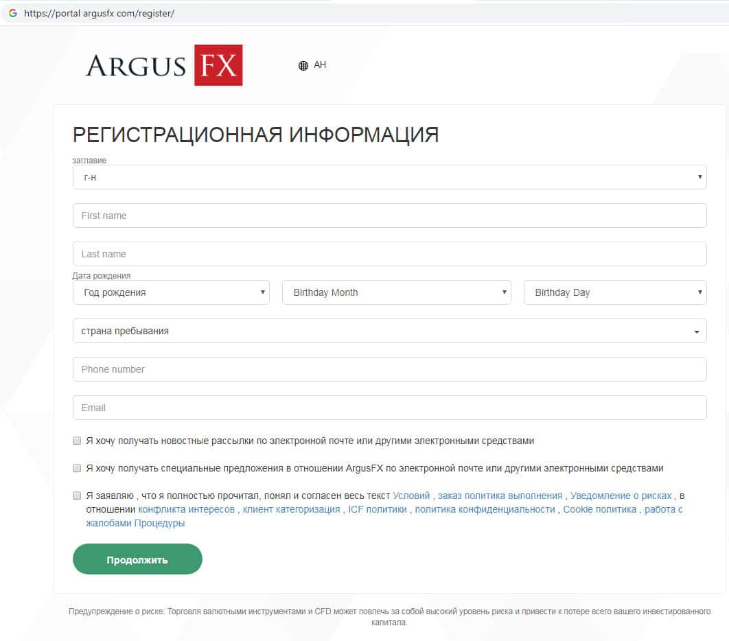 - Брокерская контора ArgusFX ведет сбор данных о клиенте на своем фальшивом сайте
