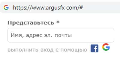 Мошенники ArgusFX так же предлагают зарегистрироваться через социальные сети, а именно через Фейсбук и гугл почту. Якобы под предлогом того, что это очень просто, нажал ярлык и все готово. Не забывайте, что аферисты Аргус ФХ фиксируют все данные, которые указаны на страничках пользователей.